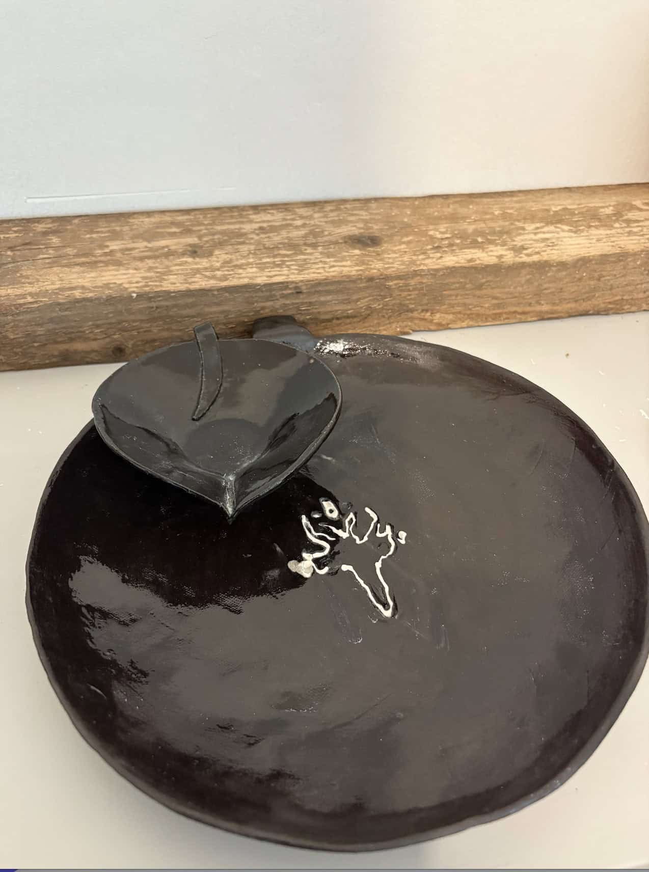 צלחת הגשה גדולה בשחור מבריק עם עיטור מרכזי